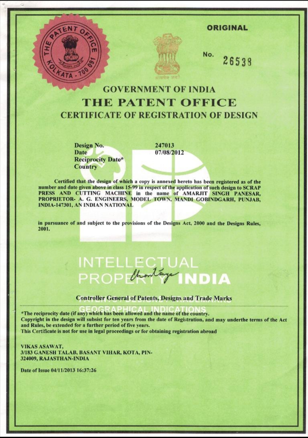 Converts the raw/random scrap into solid scrap (A GRADE) & cuts into small pieces without the use of gas cutting & saves the burning loss